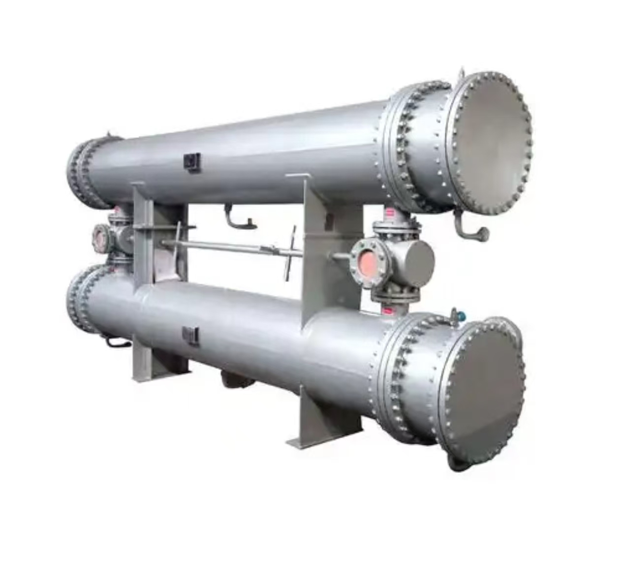 管殼式換熱器采用雙聯(lián)結(jié)構(gòu),由兩只相同面積的冷油器和三通閥裝置構(gòu)成,一只工作,一只備用,每個冷卻器能承擔整個系統(tǒng)的冷卻負荷,管板一頭固定,一頭浮動、可拆卸的管束和水室箱蓋,便于運行過程中清洗、檢查和維修。管殼式換熱器材質(zhì),根據(jù)使用場所、水系統(tǒng)條件可有多種選擇。